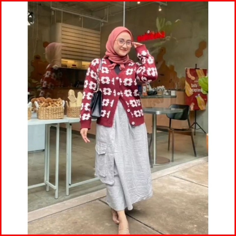 Kardigan Flower Urban Kancing Rajut Cardy Wanita Rajut Kardigan Terbaru
