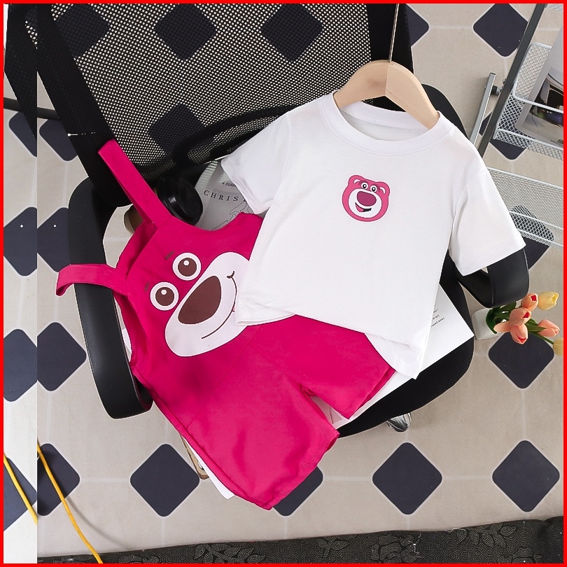Set Overall Beruang Anak Perempuan Baju Anak 1-4tahun One Set Anak Cewek Gemes
