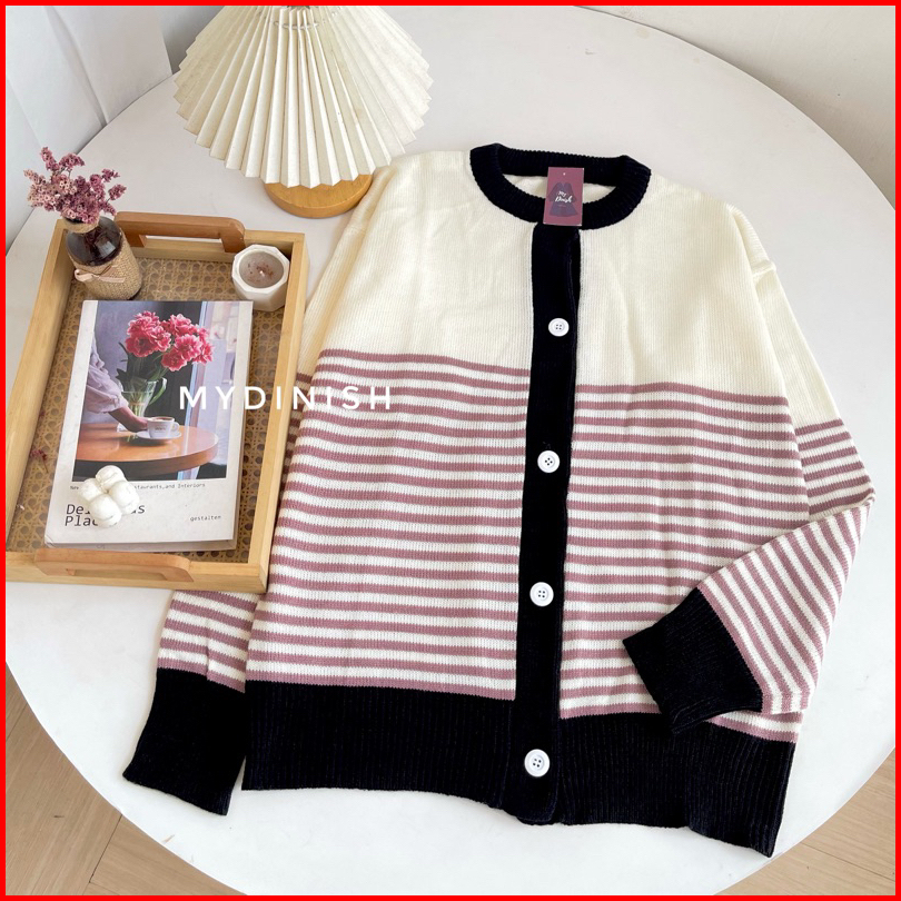 Jasmin Cardigan Rajut Wanita Korean Style Motif Garis
