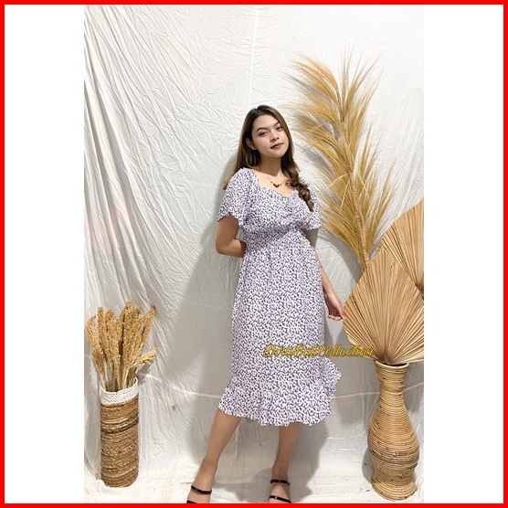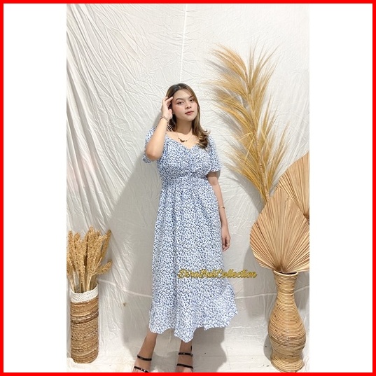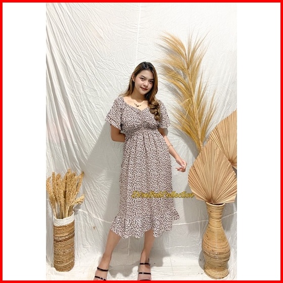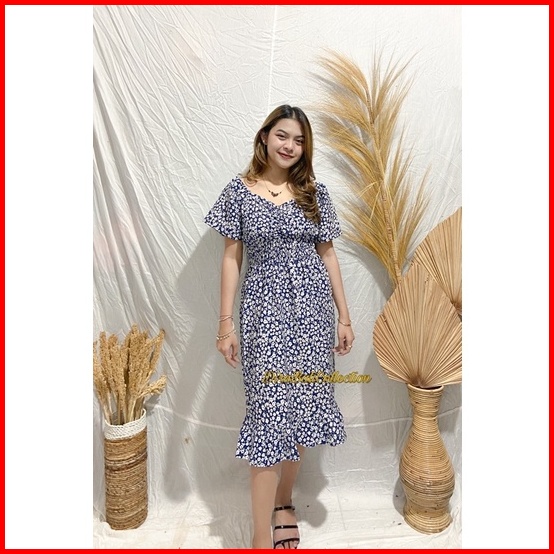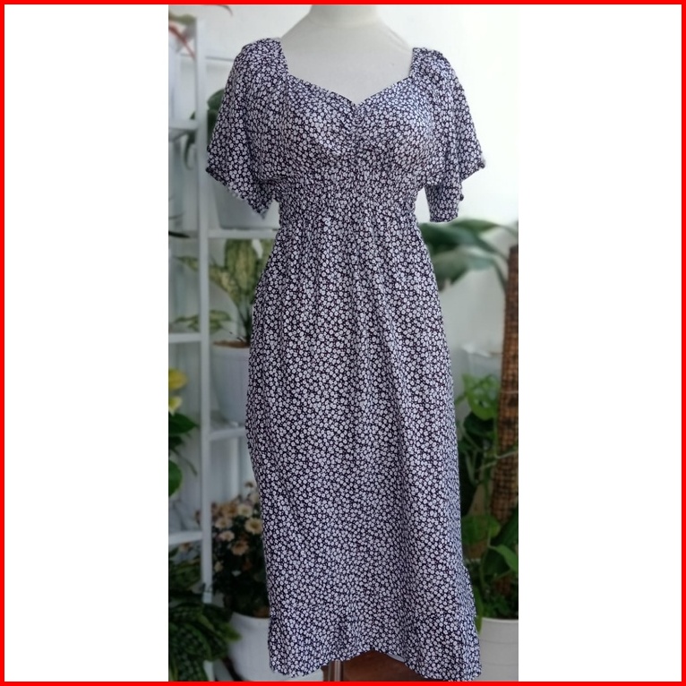 Dress Modis Motif Bunga Bali Rayon Adem