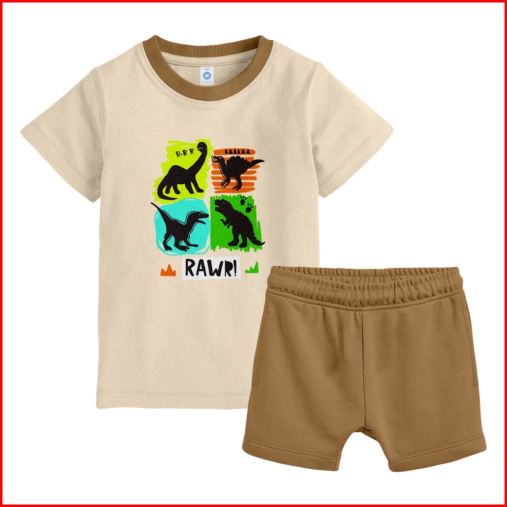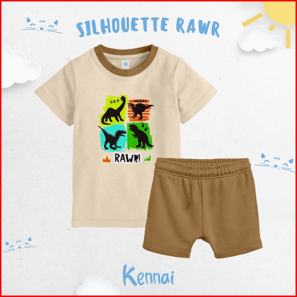 Kennai Set Mix Pendek Baju Setelan Anak Silhoutte Rawr Laki Laki Perempuan Unisex Original