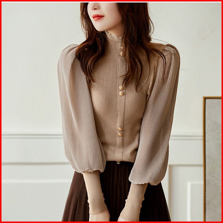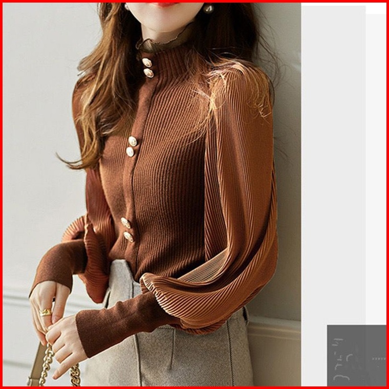 Maomao Penelope Rajut Plisket Kasual Wanita Korean Style