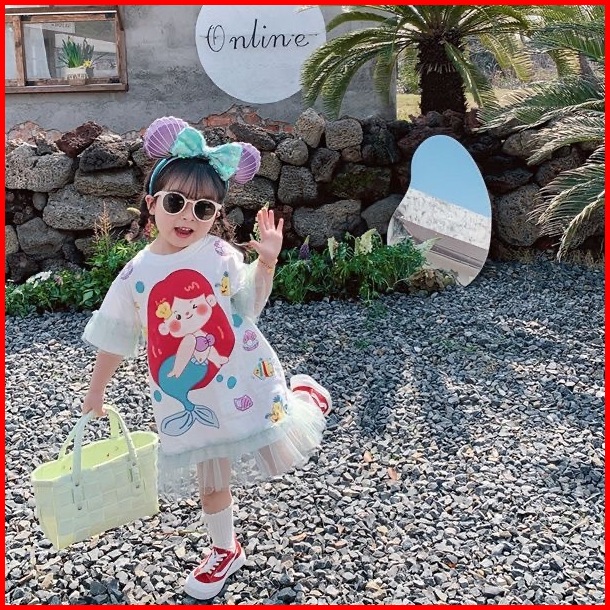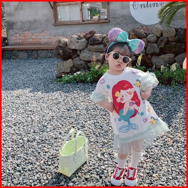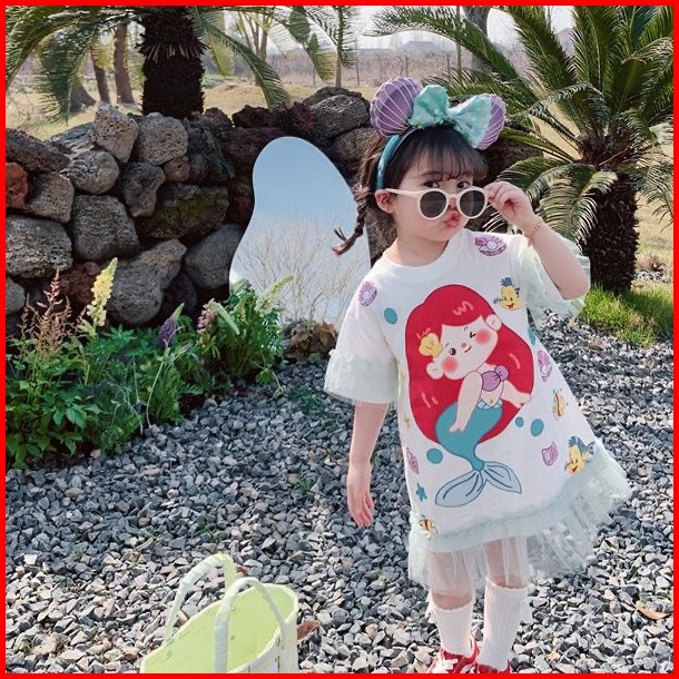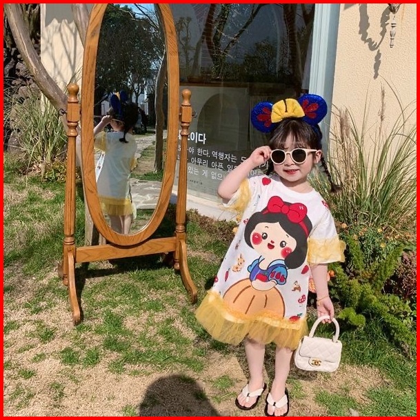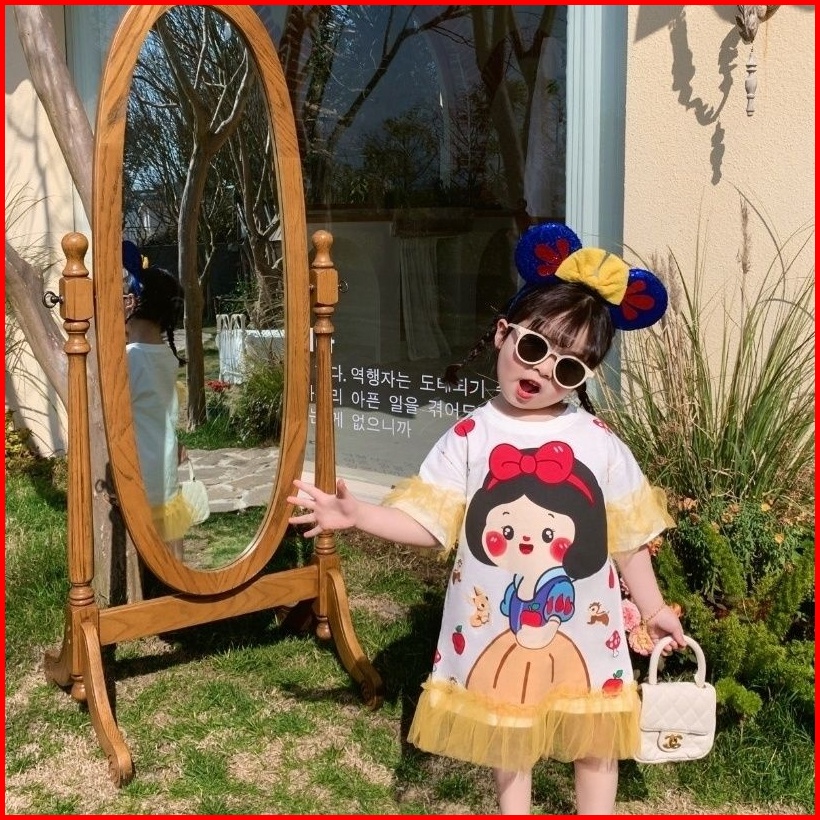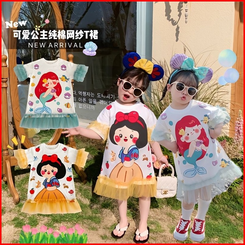 Princess Kesli 1-9 Tahun Ebv Baju Dress Anak Perempuam Duyung Snowhite Santai Motif Kartun Katun