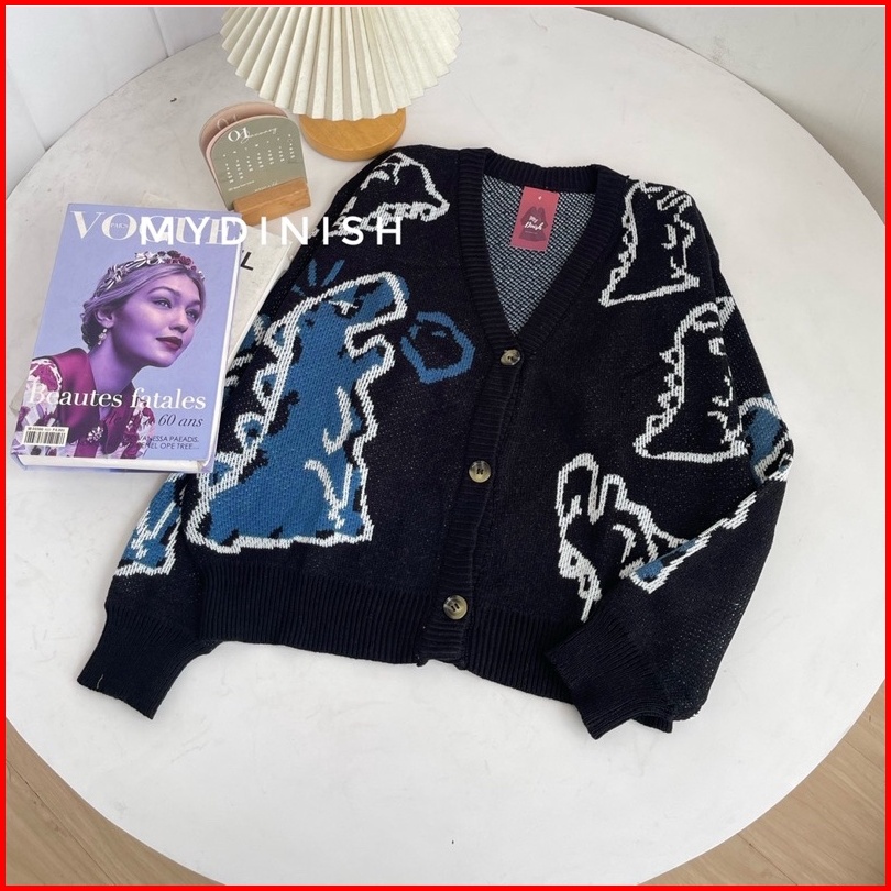 Crop Cardigan Dino - Kardigan Rajut Wanita Unisex