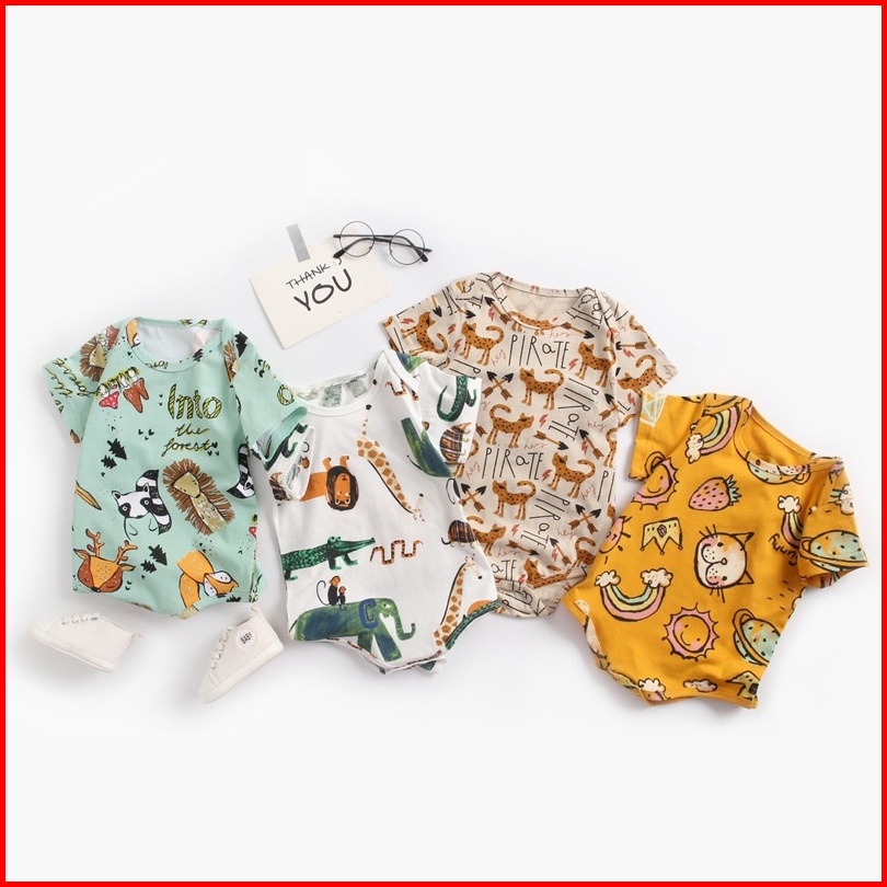 B0032 Jumper Bayi Perempuan Laki Romper Motif Hewan Katun Import