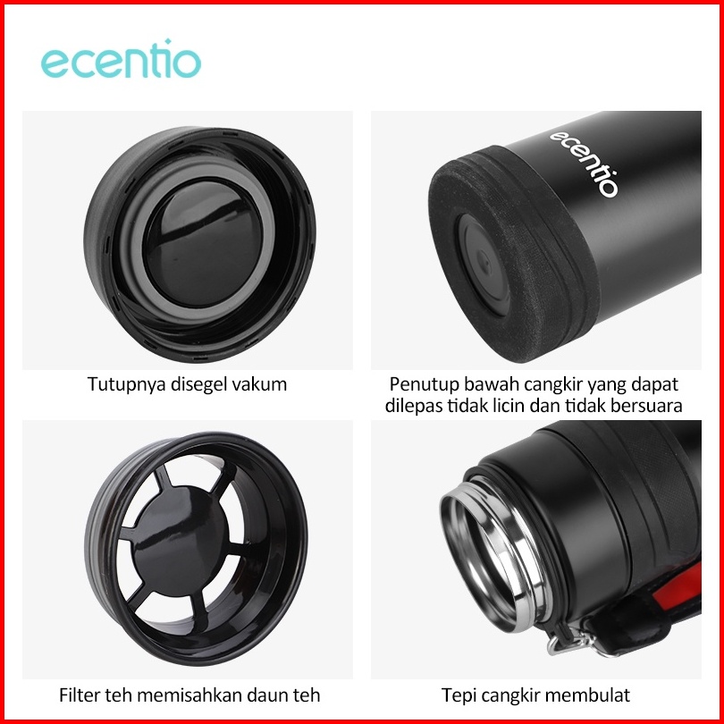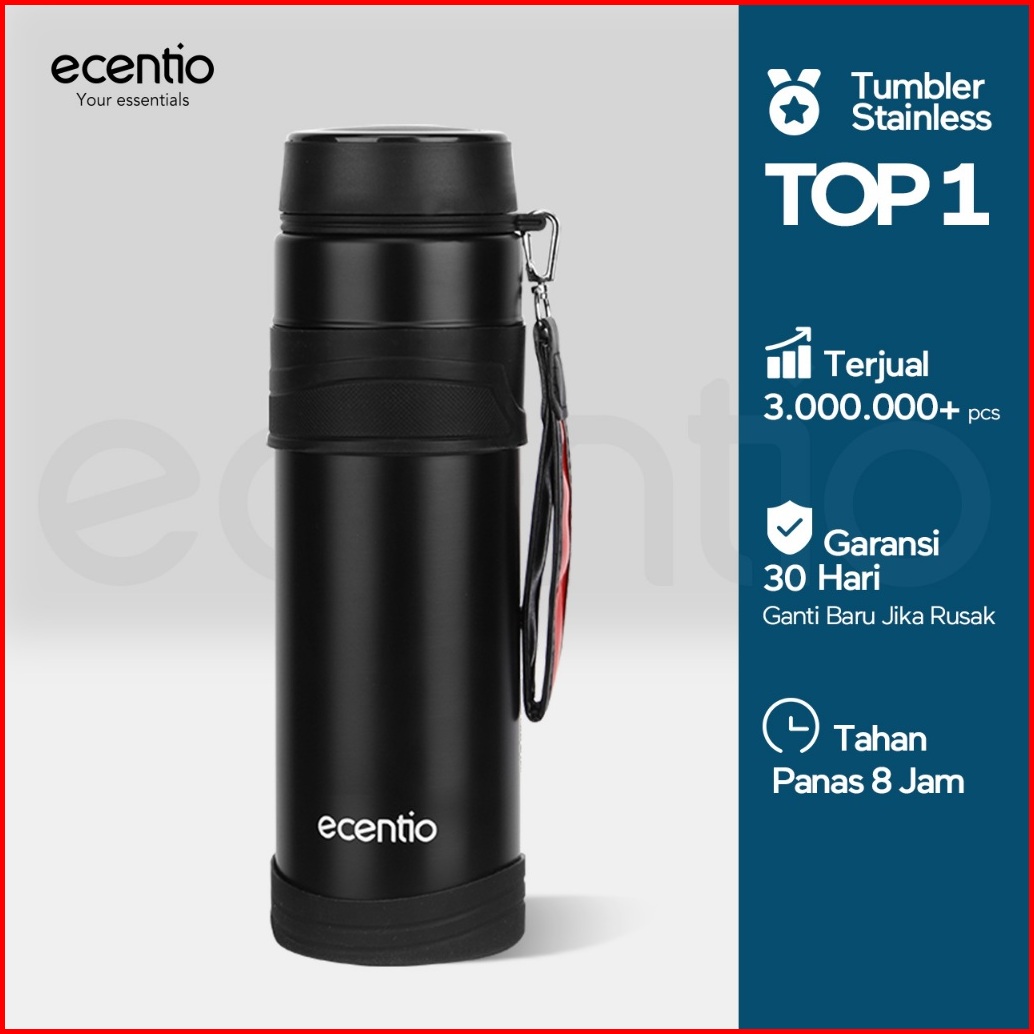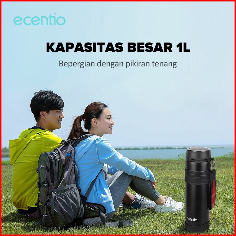 Ecentio Termos Air Panas 1 Liter Stainless Steel 304 Vacuum Flask Botol Tumbler Suhu Kapasitas Besar Gelas Air Portabel