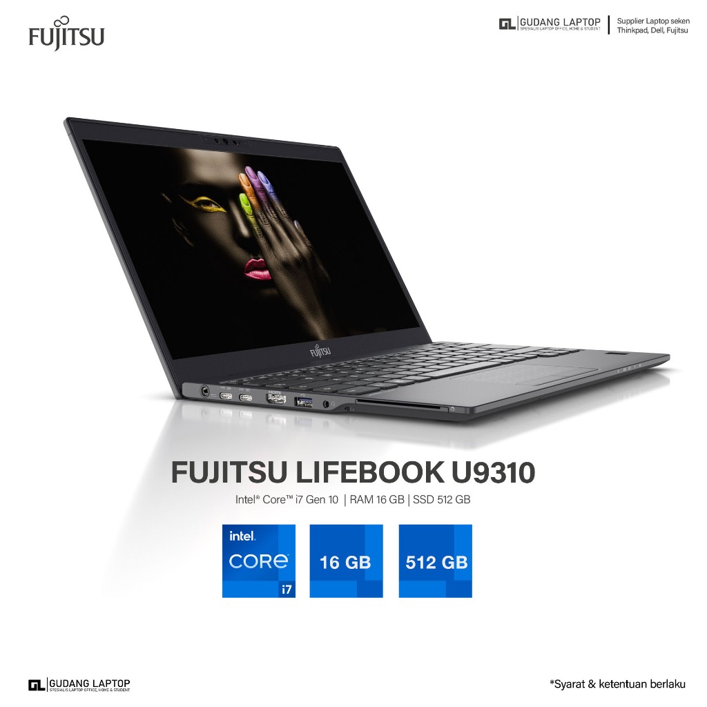 LAPTOP FUJITSU LIFEBOOK U9310 U939 CORE I7 GEN 10/8 RAM 16 GB SSD 1 TB LAYAR 13 INC FULL HD