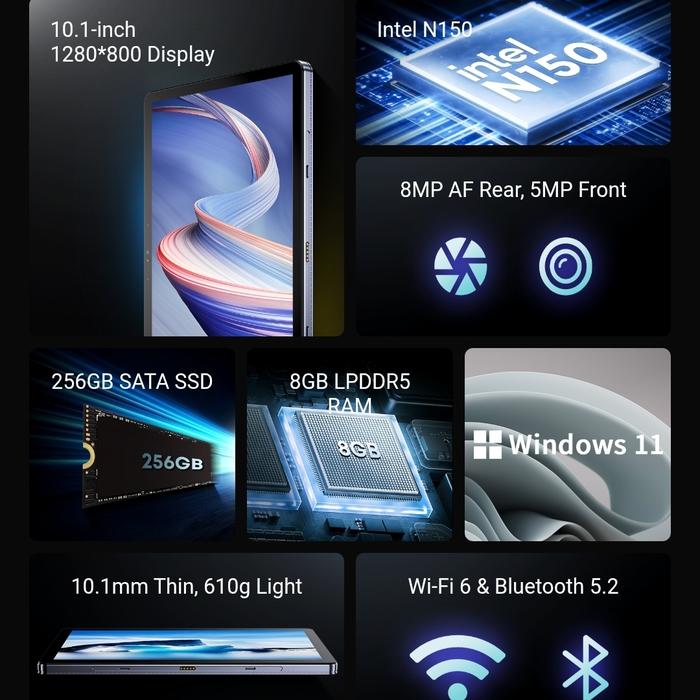Tablet PC CHUWI Hi10 X1 2025 10.1" IPS Intel Gen 13 Twinlake N150 8/256GB SSD WiFi 6 Windows 11 Touchscreen Unit Baru