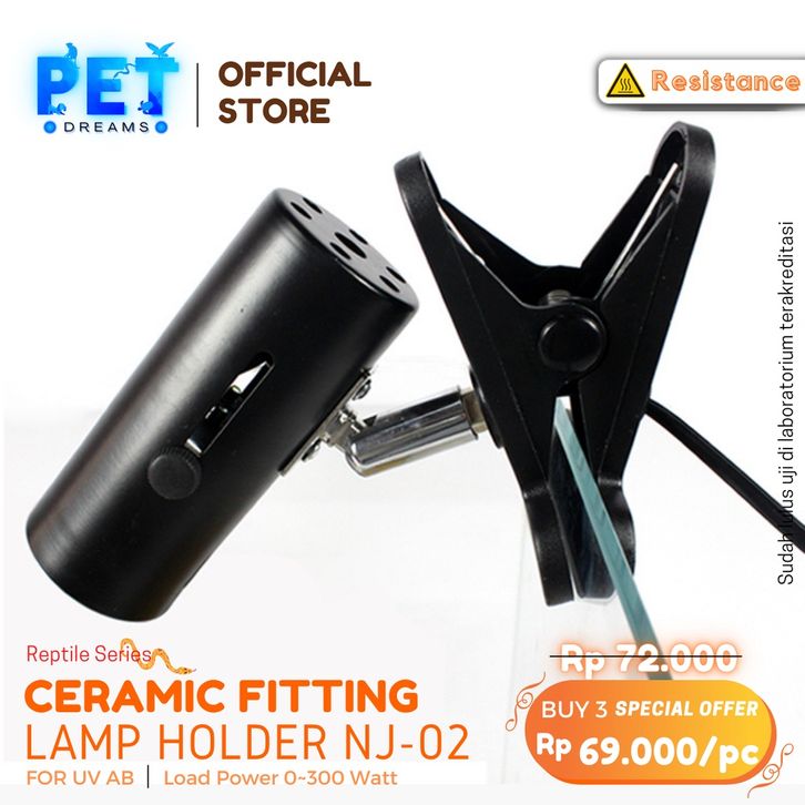 LAMPU CERAMIC PENDEK UVA UVB FITING KERAMIK JEPIT NOMOY REPTILE REPTIL KURA SULCATA TORTO IGUANA NJ02