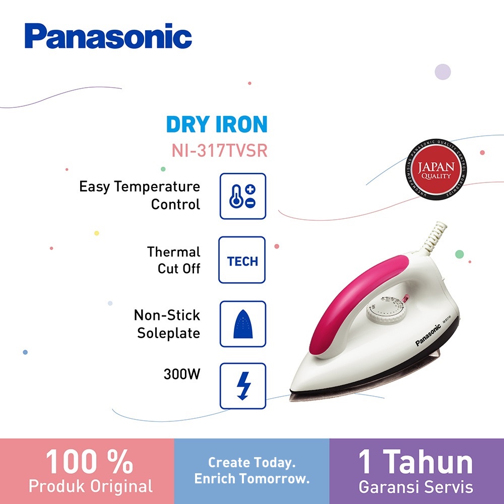 PANASONIC SETRIKA HEAVY WEIGHT DRY IRON NI-22AWT / NI 22AWT / NI 22 AWT / NI22AWT (450W) GARANSI RESMI