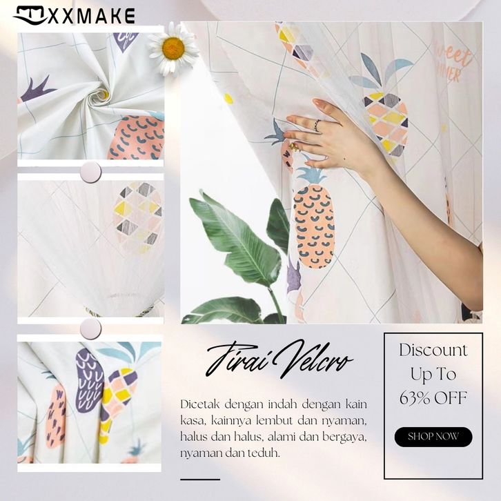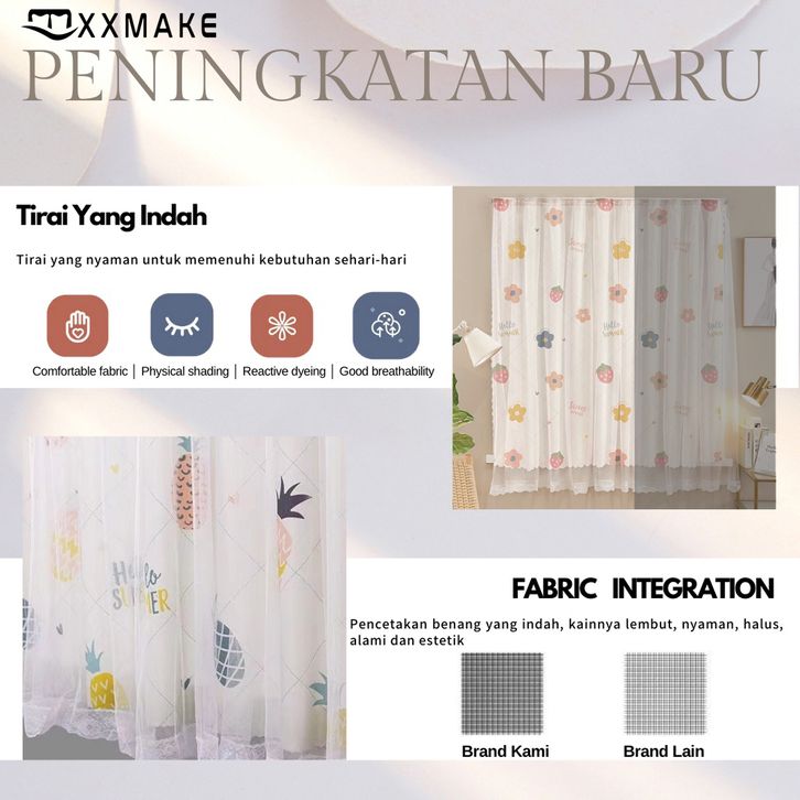 Tirai Hordeng Jendela /Tirai Gorden /Stiker dua sisi Tanpa Paku Pemasangan Gampang 2 Ukuran XXMake