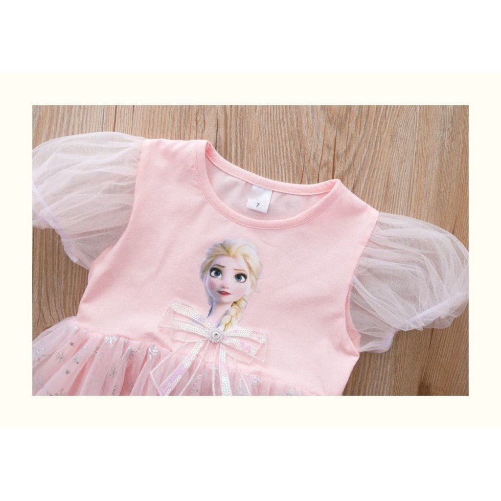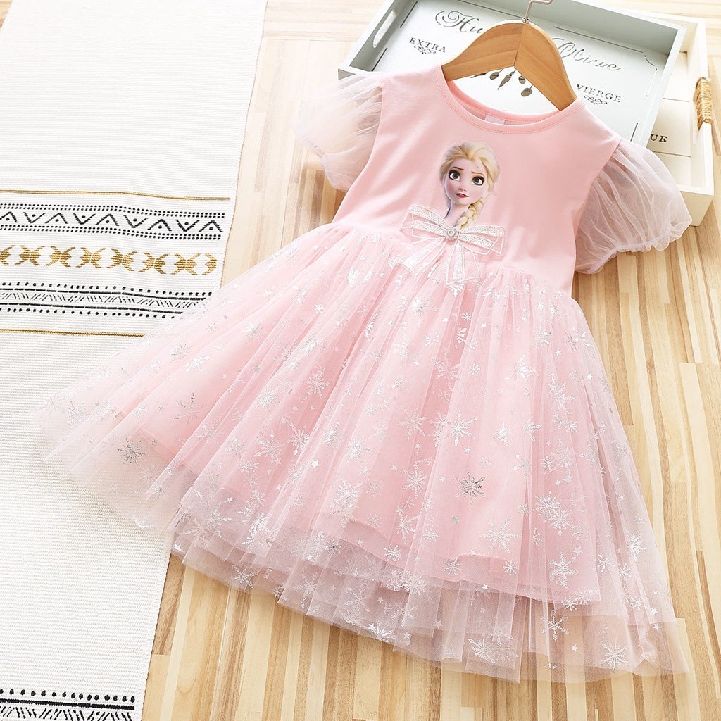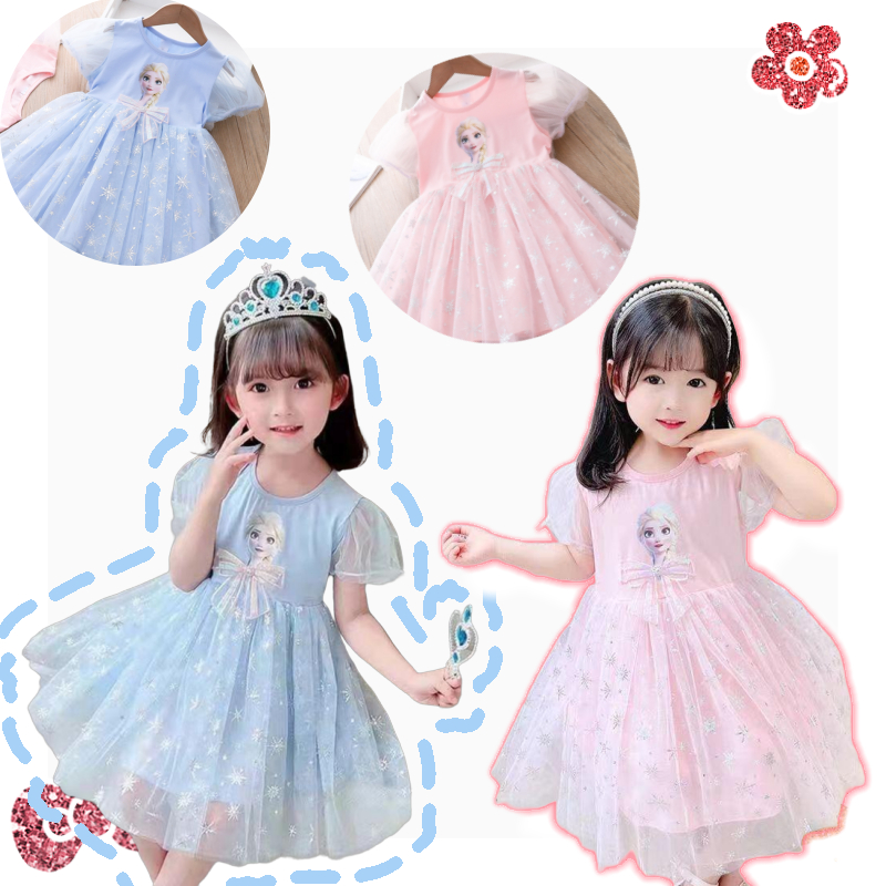 [LITTLE BABY BEAR]1-9 TAHUN GAUN LENGAN PENDEK ANAK PEREMPUAN BERUSIA GAUN PUTRI FROZEN ELSA GAUN JALA MUSIM PANAS YANG NYAMAN DAN MANIS