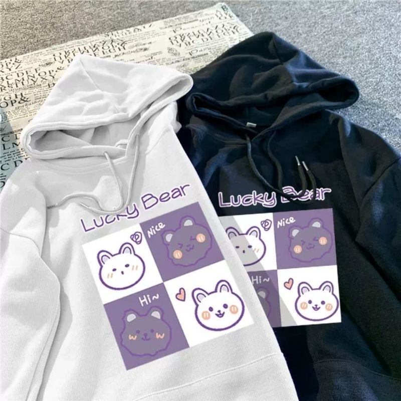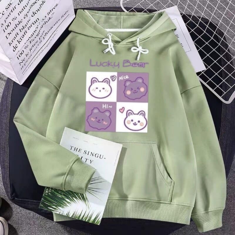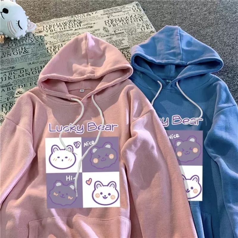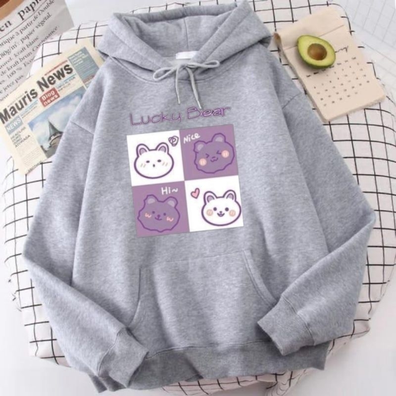 JUMPER HOODIE ANAK CEWEK LUCKY BEAR KITTY LILAC | SWEATER BAHAN FLEECE TEBAL UNTUK USIA 5 - 16 TAHUN