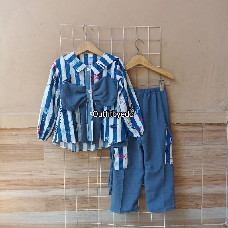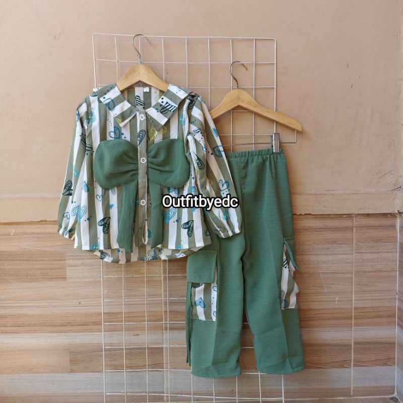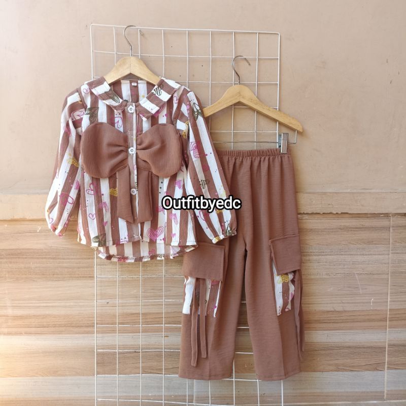 OUTFITBYEDC - SETELAN ANAK CELANA CARGO I MOTIF SALUR BAHAN CRINKLE AIRFLOW 3-12 TAHUN