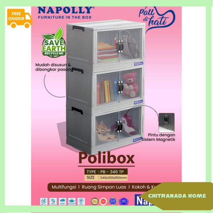 CONTAINER BOX LIPAT RAK SERBAGUNA LEMARI SUSUN PLASTIK NAPOLLY POLIBOX