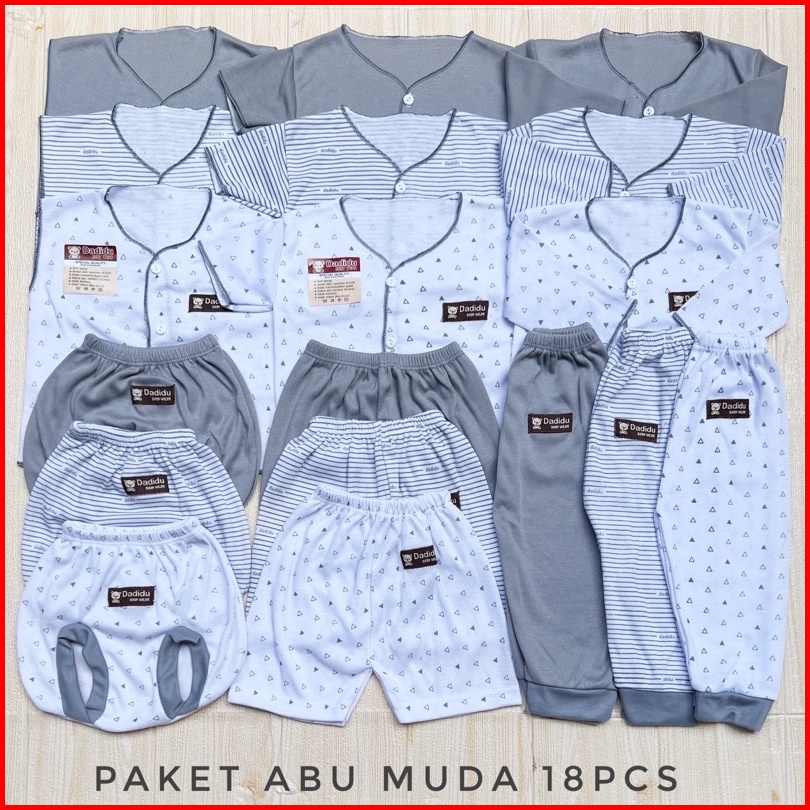 Dadidu Grey Abu Muda Series - 18 Pcs Paket Baju Bayi Kekinian Celana Bayi Setelan Bayi Baju Bayi Newborn Baju Bayi Baru