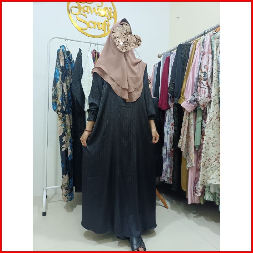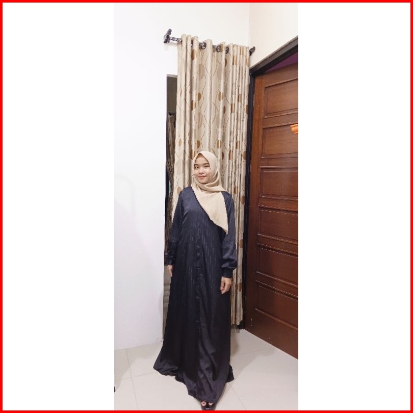Terbaru Migal Dan Gamis Armani Metalic Stripes Kekinian Model Abaya Kancing Tangan Kecil