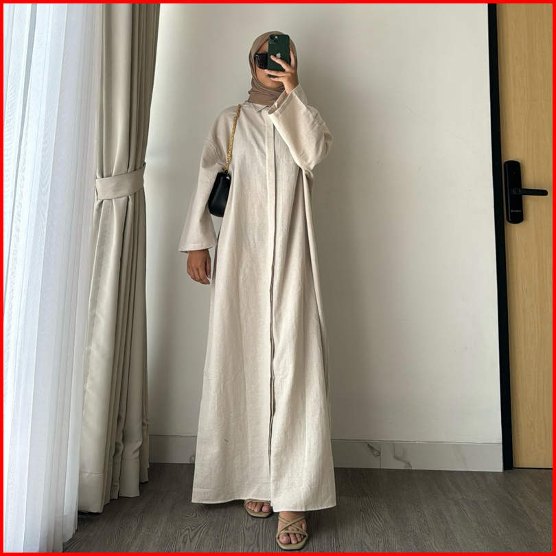 Jeda Abaya - By Leody Kode 353 Gamis Wanita Linen Jumbo Bigsize Dress