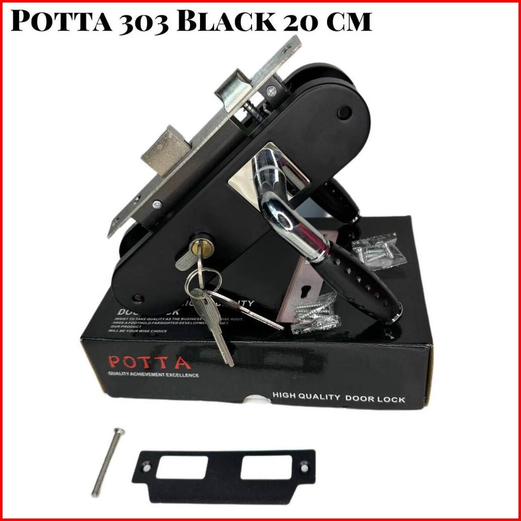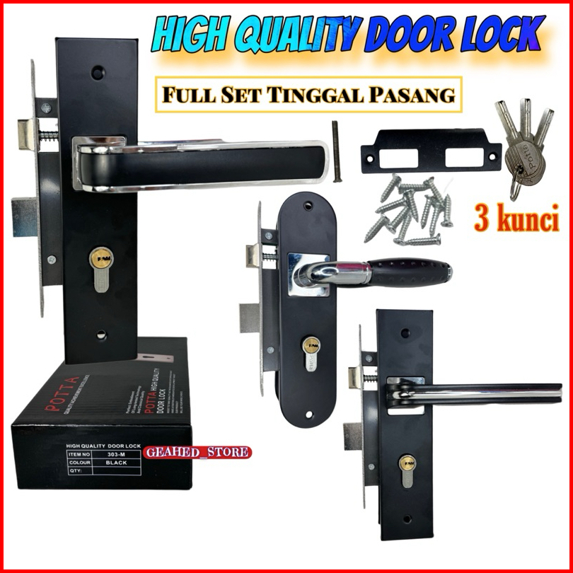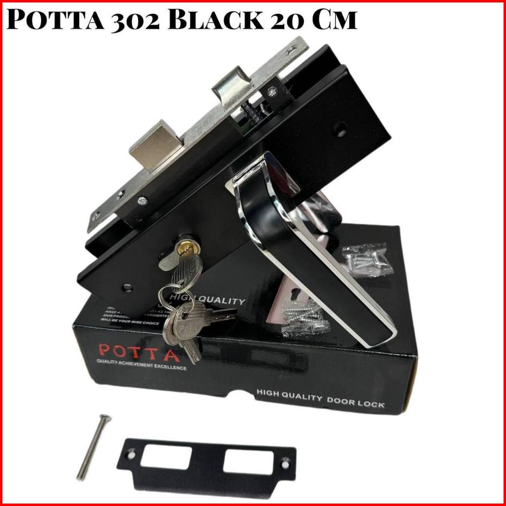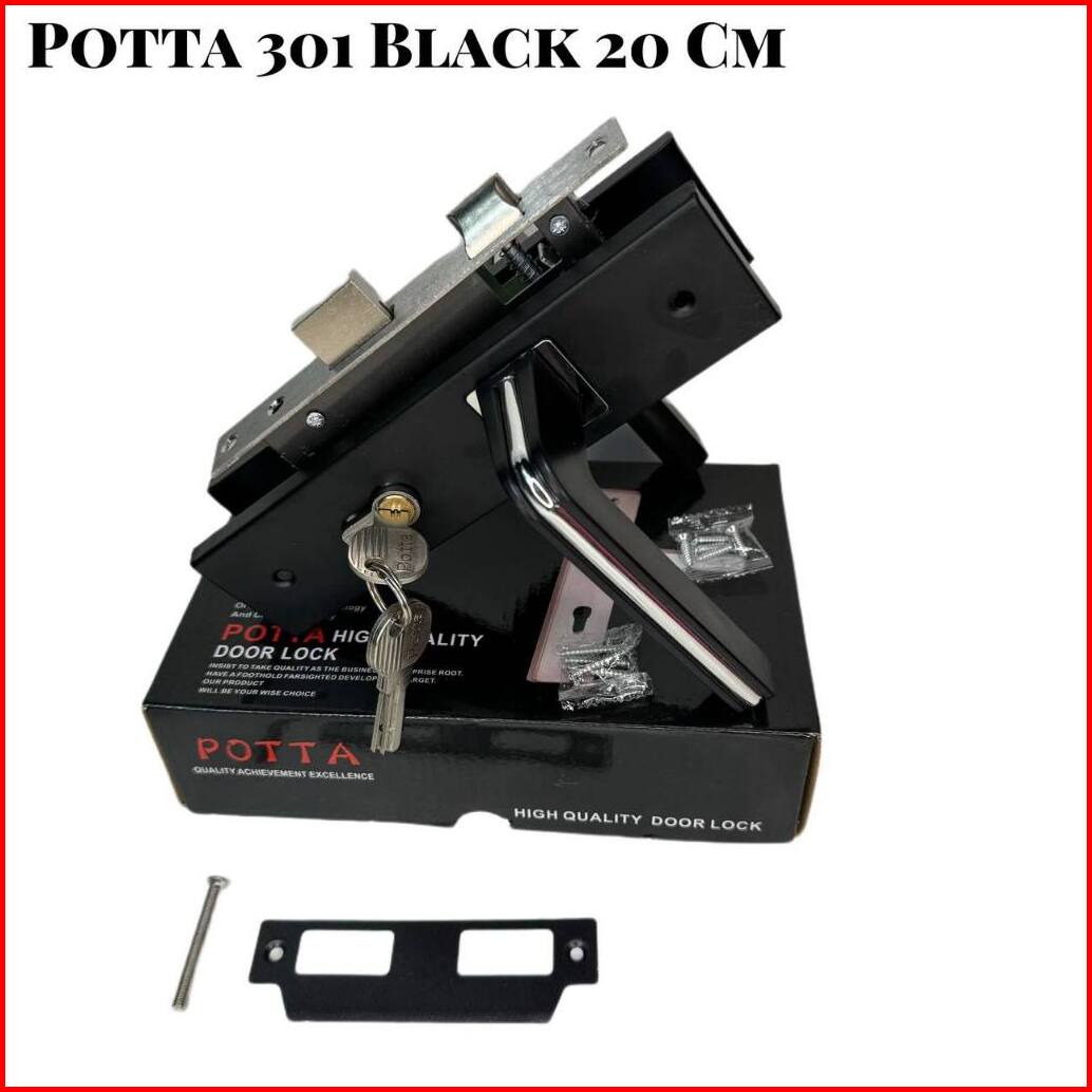 Gagang Kunci Pintu Handle Pintu Komplit Tanggung 20 Cm Murah Premium Motif Black Combination Silver Chromseries Ukuran T