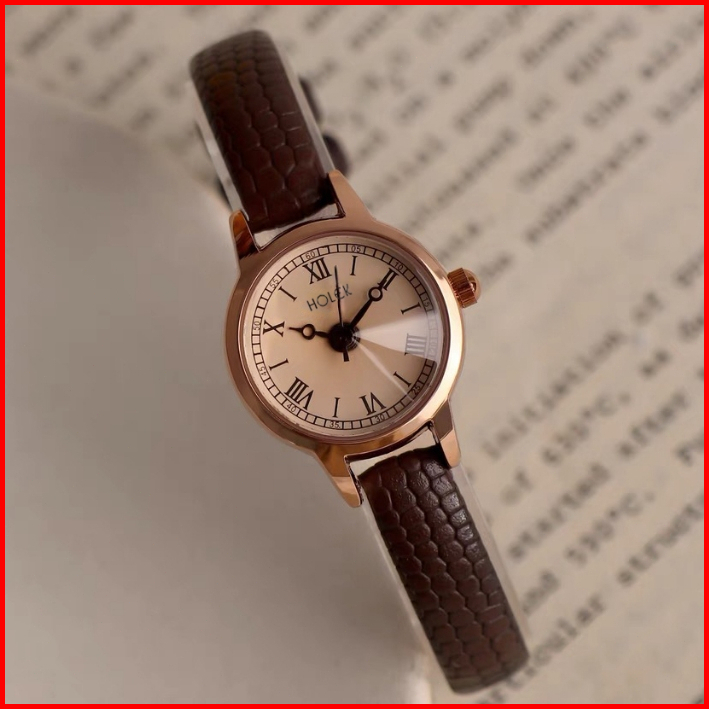 Holek 1401 Jam Tangan Wanita Tali Kulit Original Temperamen Retro Simple Quartz Watch Waterproof Kotak Gratis