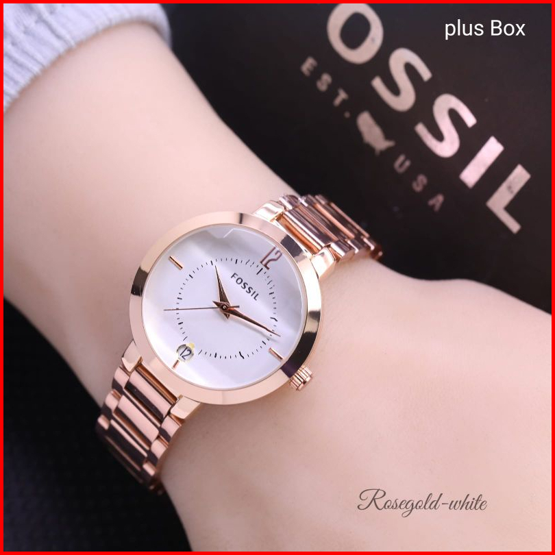 Jam Tangan Wanita Terlaris Analog Anti Air Tanggal On Kaca Belimbing Tali Rantai Solid