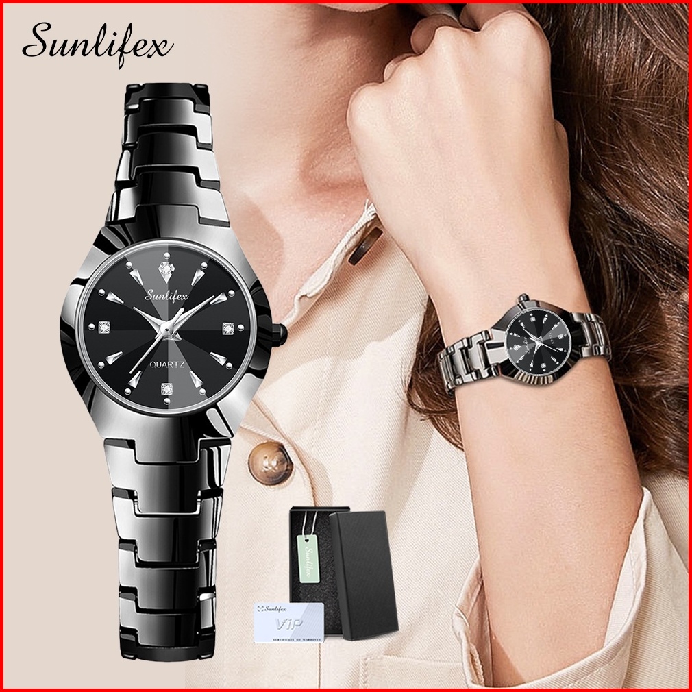 Sunlifex Jam Tangan Wanita Original Berlian Anti Air Analog Bisnis Kuarsa Jam Tangan Cewek Kotak Gratis