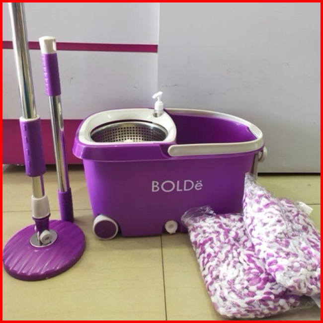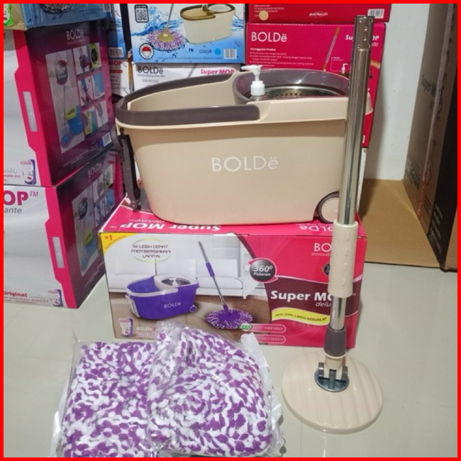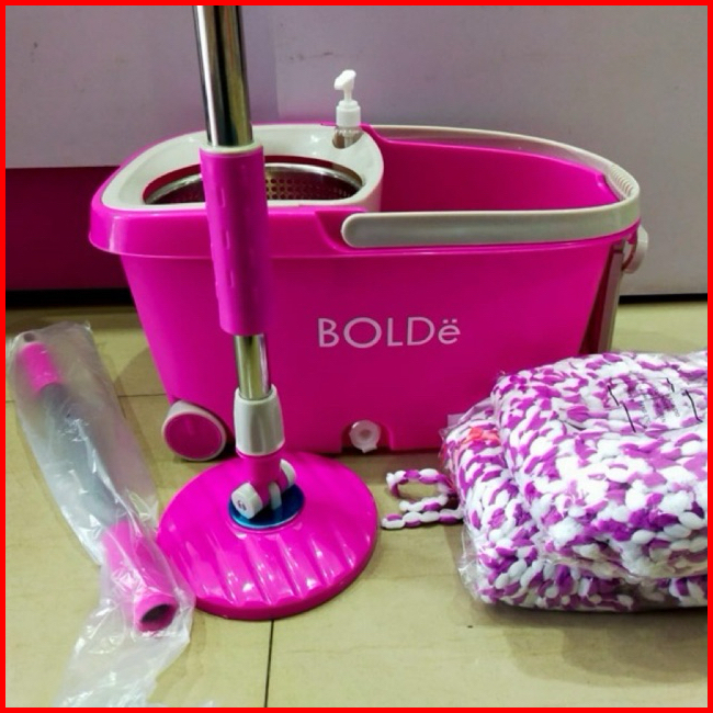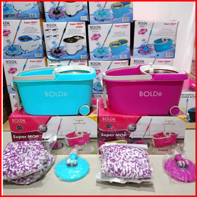 Alat Pel Lantai Putar Otomatis Spin Mop Ember Pengering Stainless Beroda Super Mop Deluxe Bolde