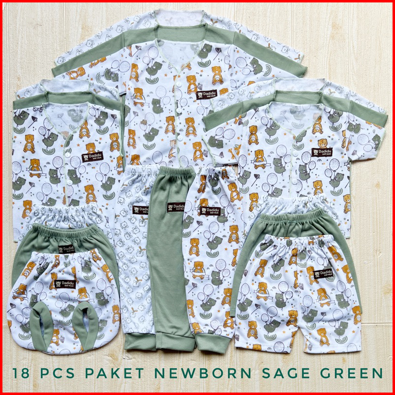 Dadidu Sage Green Hijau Series - 18 Pcs Paket Baju Bayi Kekinian Celana Bayi Setelan Bayi Baju Bayi Newborn Baju Bayi Ba