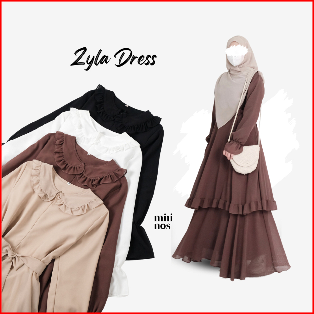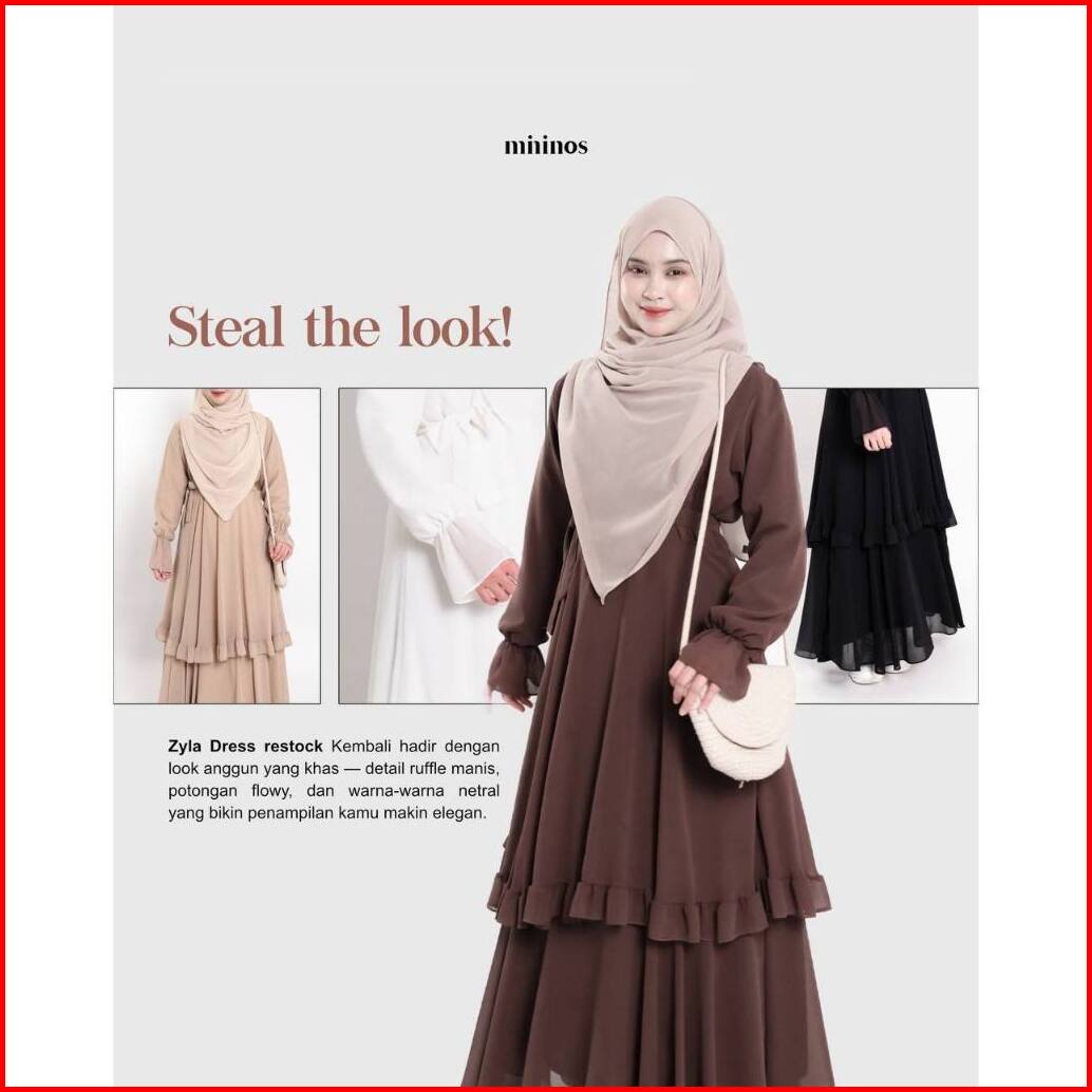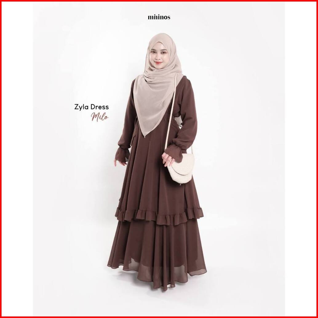 Mininos Zyla Dress Gamis Ceruty Babydoll Gamis Remaja Wanita Muslim Panjang Kondangan