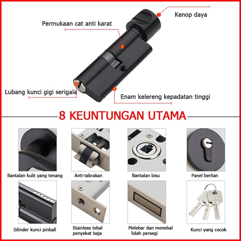Kunci Pintu Full Handle Set Gagang Pintu Lengkung Black Doff Premium Full Set