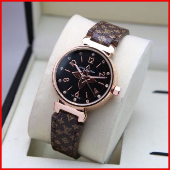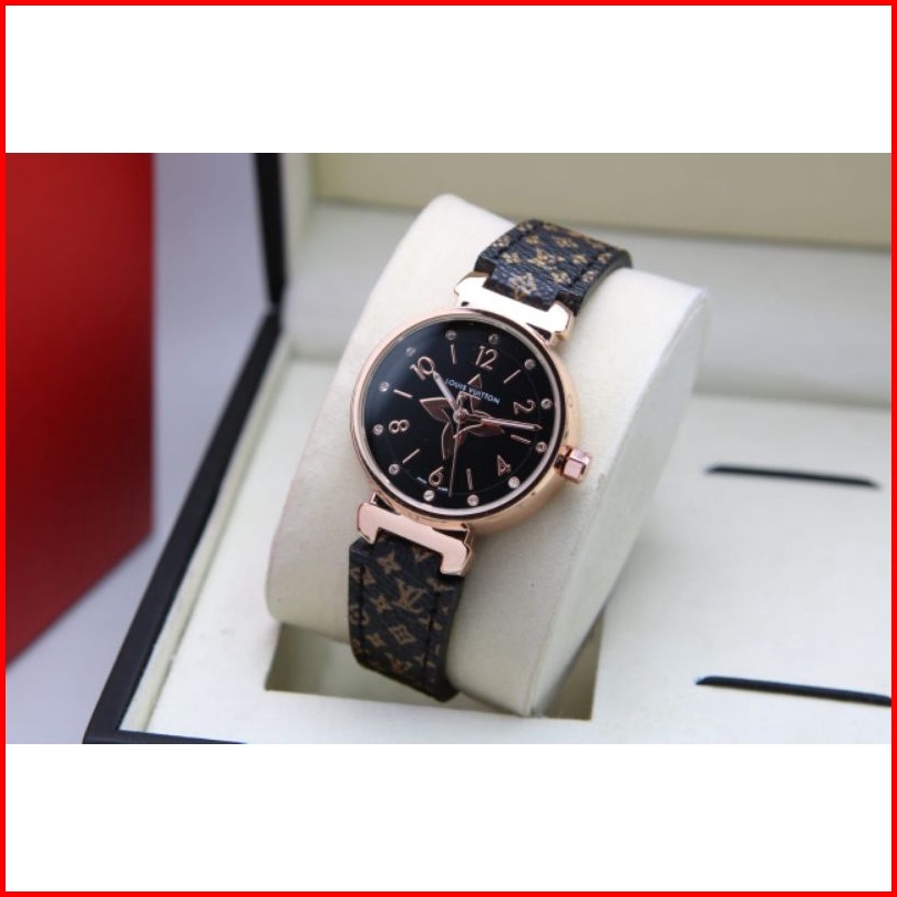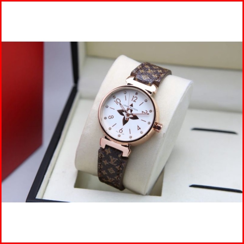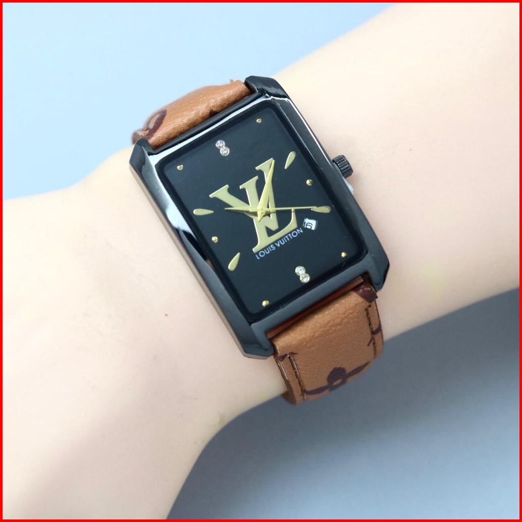 Jam Tangan Wanita Lv Kulit Tanggal Aktif Diameter 3.4cm Jam Tangan Fashion Murah