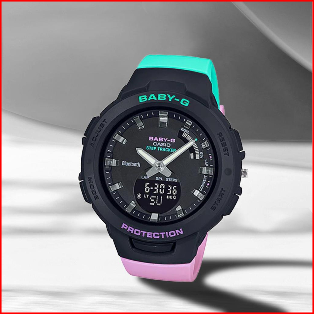 Jam Tangan Wanita Baby-g Casio Squad Bsa-b100sc Anti Air Dual Time Digital Analog Cewek Terbaru