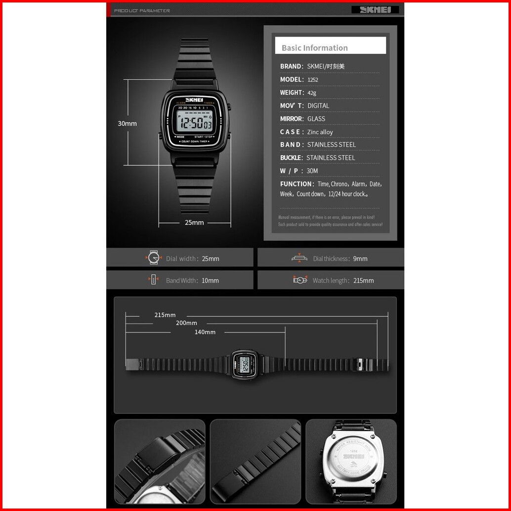 Skmei 1252 1901 Jam Tangan Wanita Digital Tali Stainless Mgos