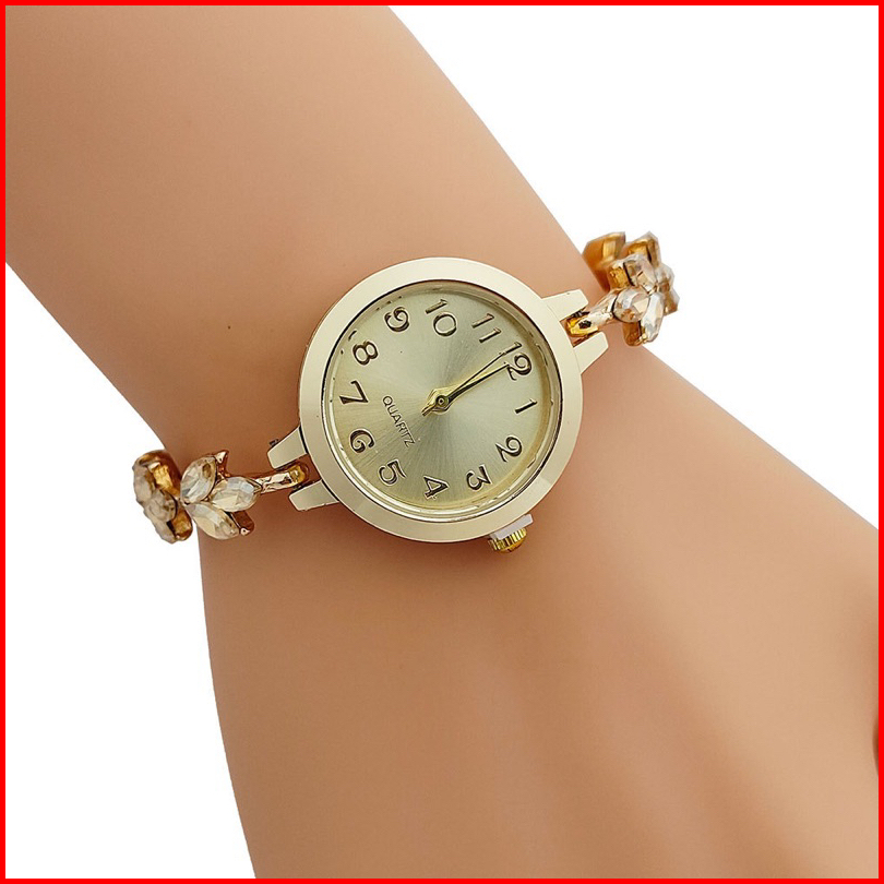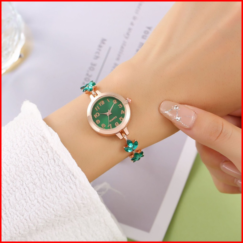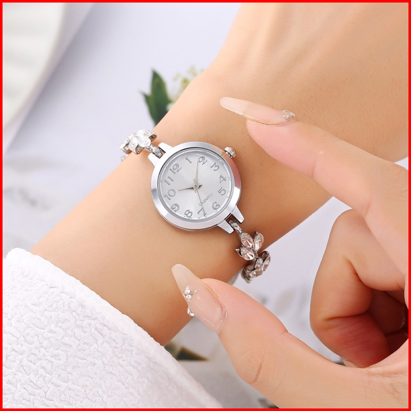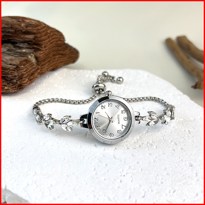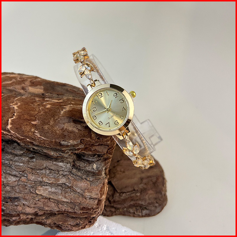 Jam Tangan Wanita Rantai Serut Model Bulat Angka Jam Quartz Elegant Jam Perempuan