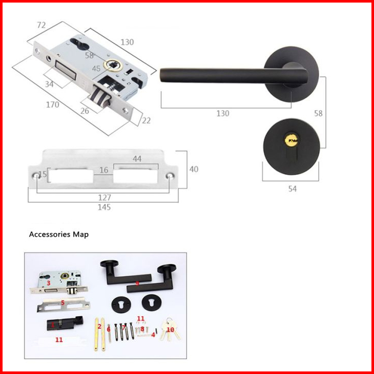 Gagang Pintu Gaya Eropa Hitam Full Set Kunci Pintu Premium Door Lock