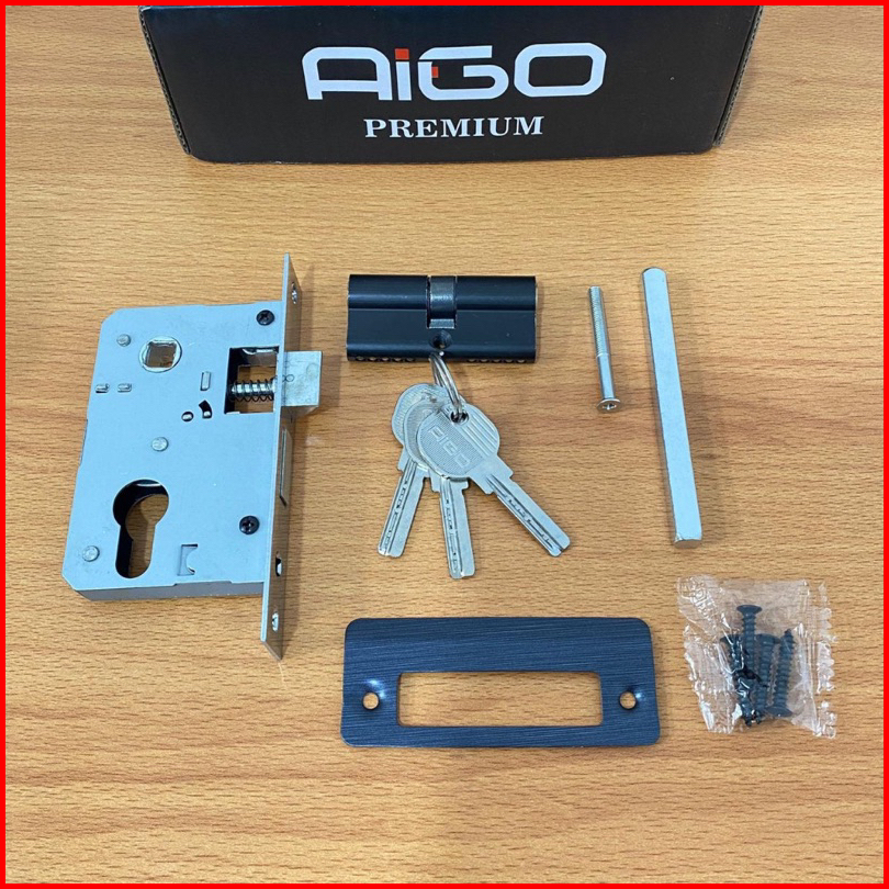 Handle Pintu Hitam Set Aigo Kunci Pintu Rumah Ukuran Kecil 16cm Gagang Kotak