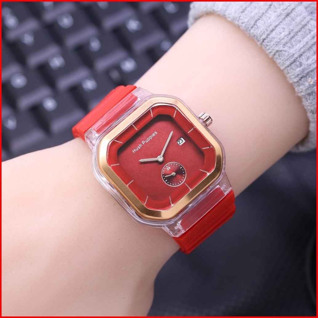Jam Tangan Wanita Hush Puppies Transparan Detik Bawah Segi Rubber