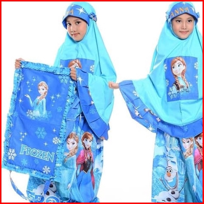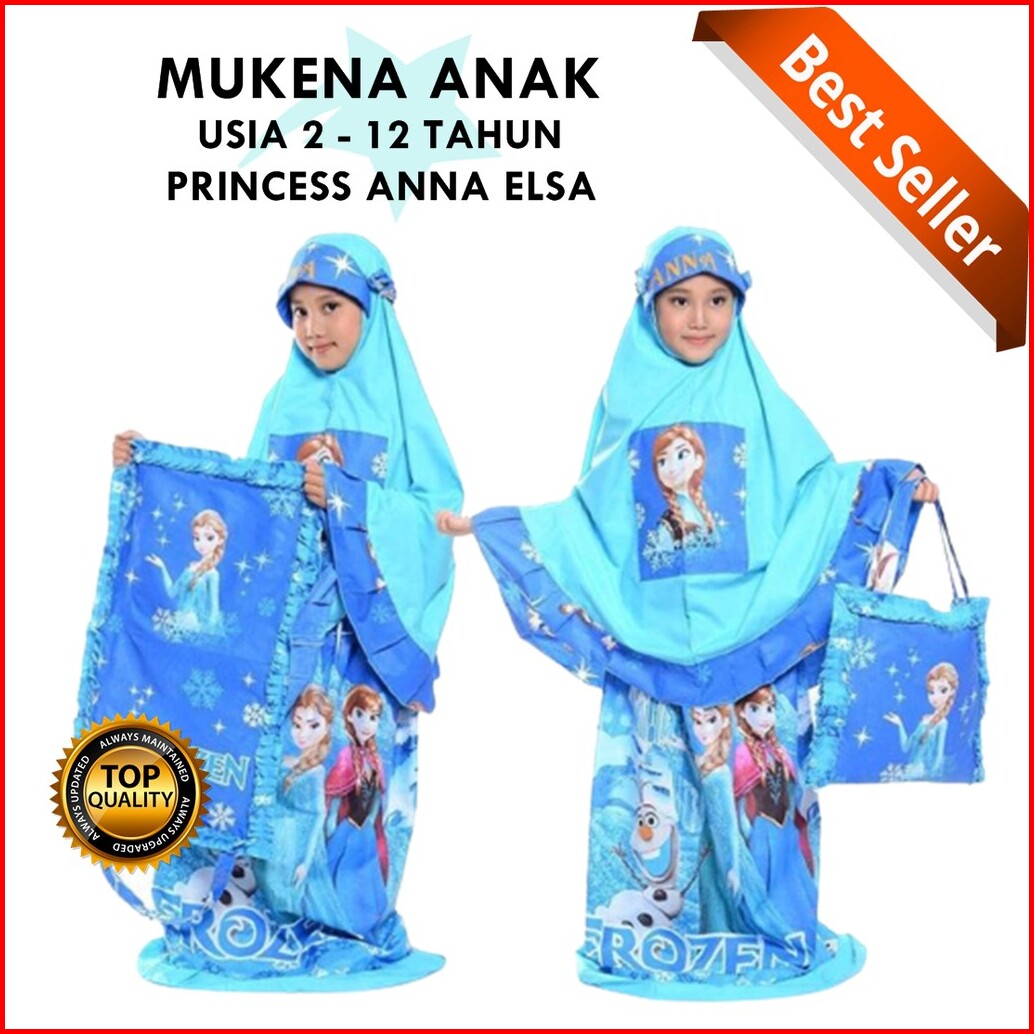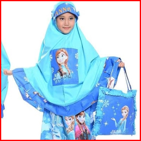Mukena Anak Karakter Frosen Ice Usia 2-13 Tahun Paud Tk Sd Bahan Adem Motif Princess Anna Elsa