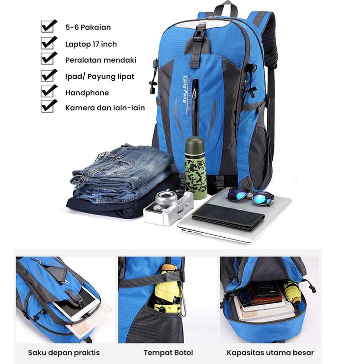 Tas Ransel Pria Anti Air Backpack Outdoor Cowok Waterproof Tas Punggung Sekolah Unisex Tas Gendong Kuliah Laki Tas
