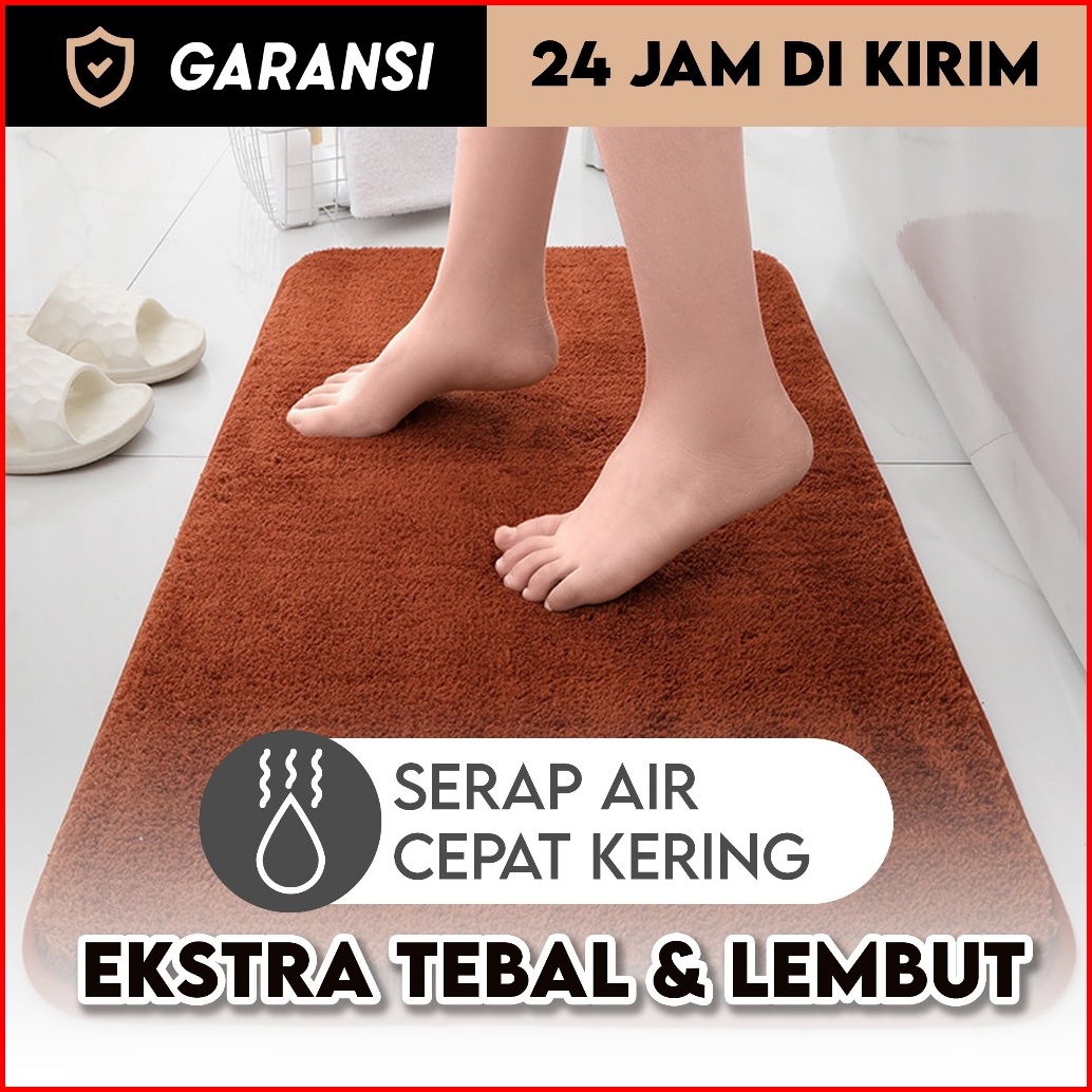 Keset Kaki Bulu Polos Kamar Mandi Toilet Anti Slip Mat Serap Air Bulu Tebal Nyaman Premium