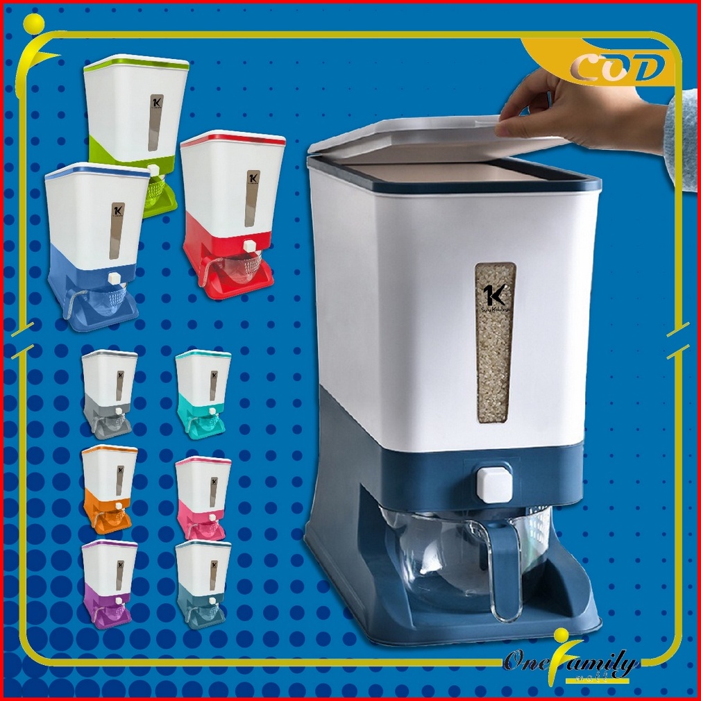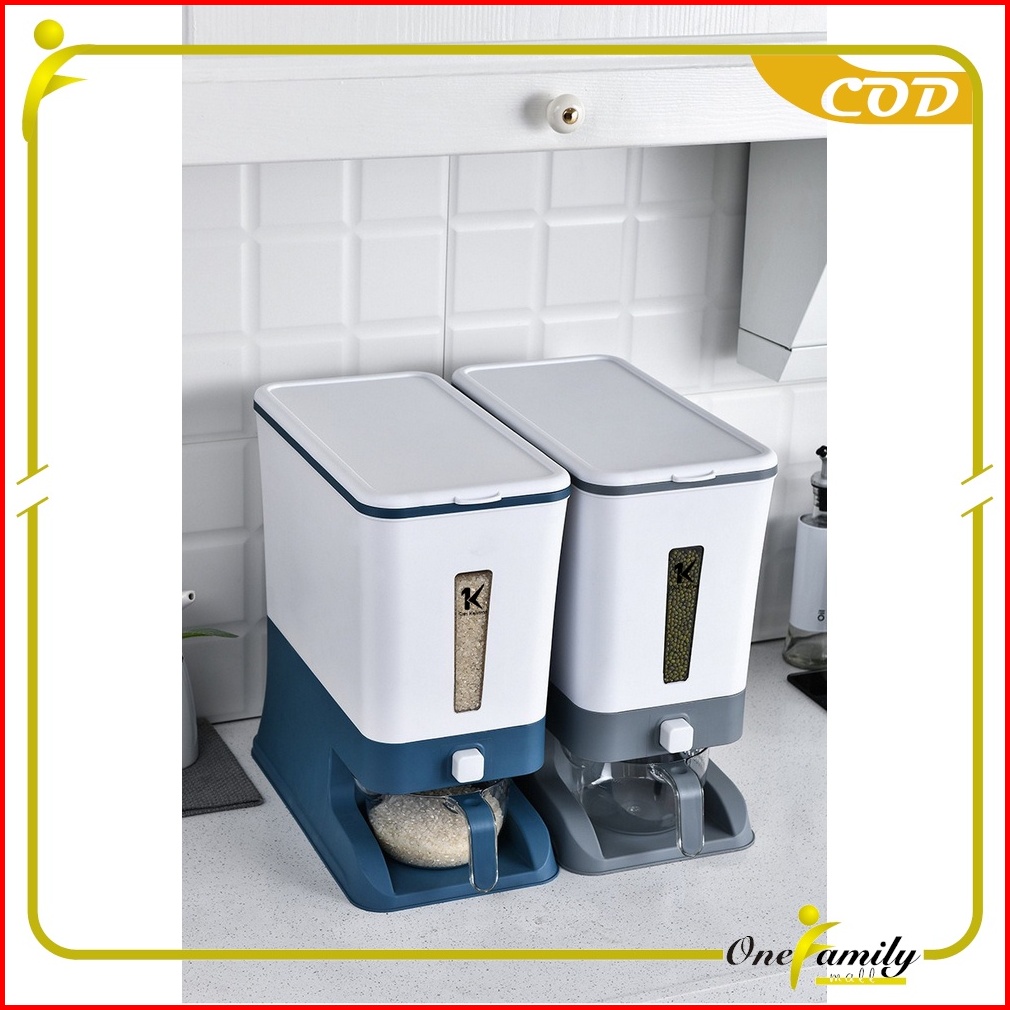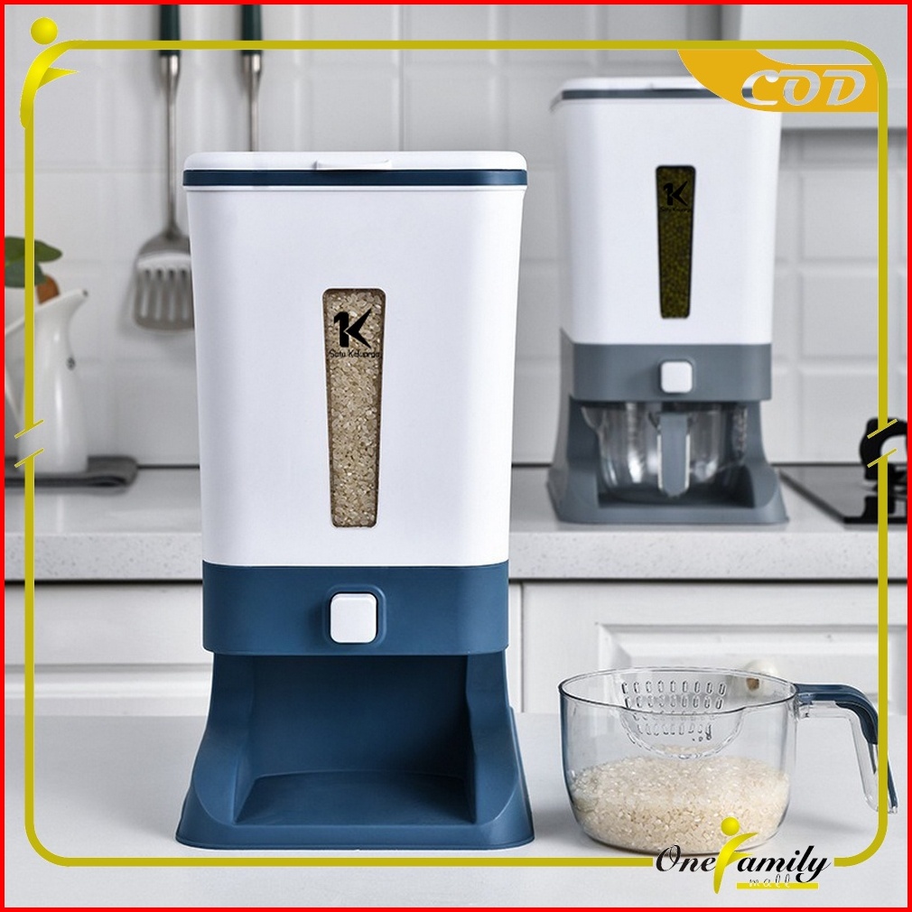 One-c203 Dispenser Beras 12kg Rice Box Tempat Penyimpanan Beras Otomatis Dengan Wadah Pengering Bera