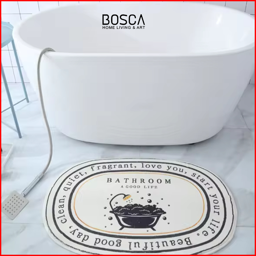 Bosca Living - Vintage Bw Bathroom Mat Keset Kamar Mandi Estetik Karpet Bathroom Bahan Tebal Bulu