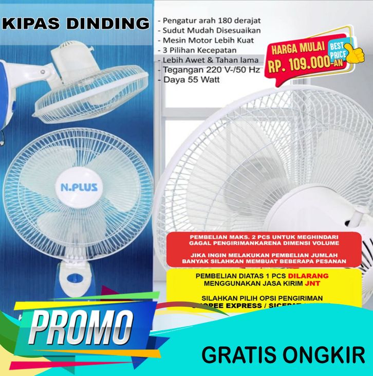 Kipas Angin Dinding Gantung 12" 16" Wall Fan NATIONALPLUS Free Ongkir