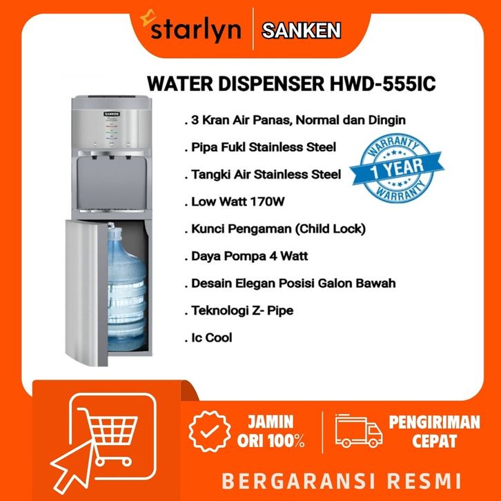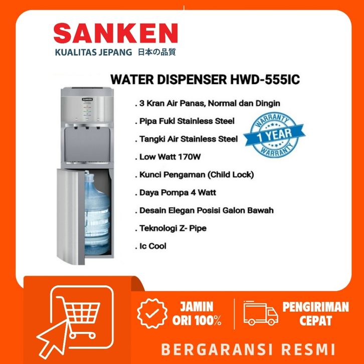 DISPENSER AIR GALON BAWAH SANKEN HWD 555IC LOW WATT BERGARANSI RESMI MURAH BERKUALITAS GRATIS ONGKIR TANPA DP