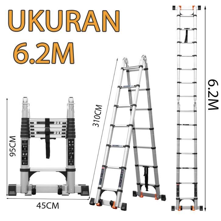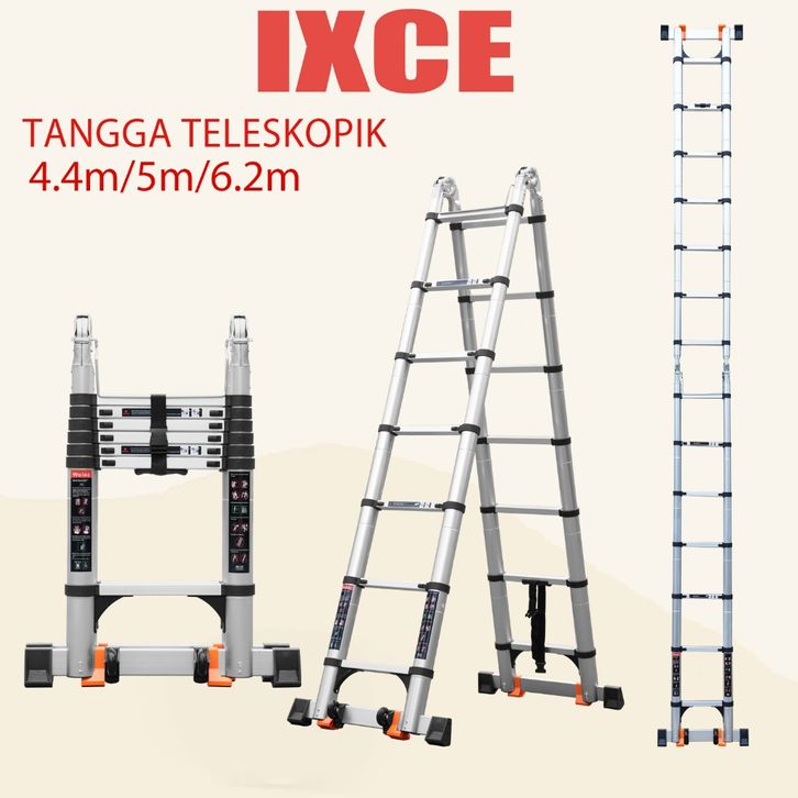 Ixce Tangga Lipat Aluminium Serbaguna 4.4M/5M/6.2M Tangga Tujuan Ganda Bahan Paduan Aluminium Berkualitas Tinggi
