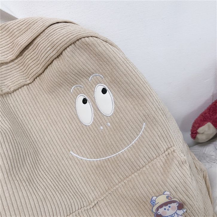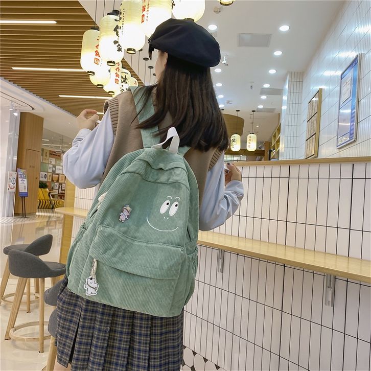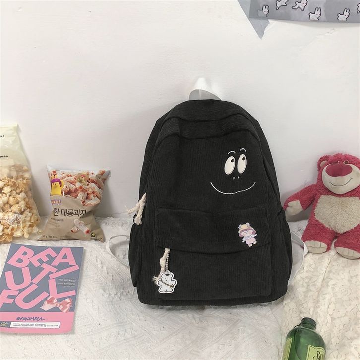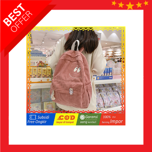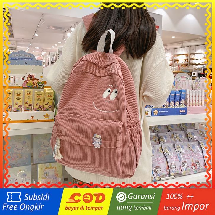tas ransel WYK139 Tas Ransel Korduroi Muka Senyum Smiley Face Backpack Impor TKM