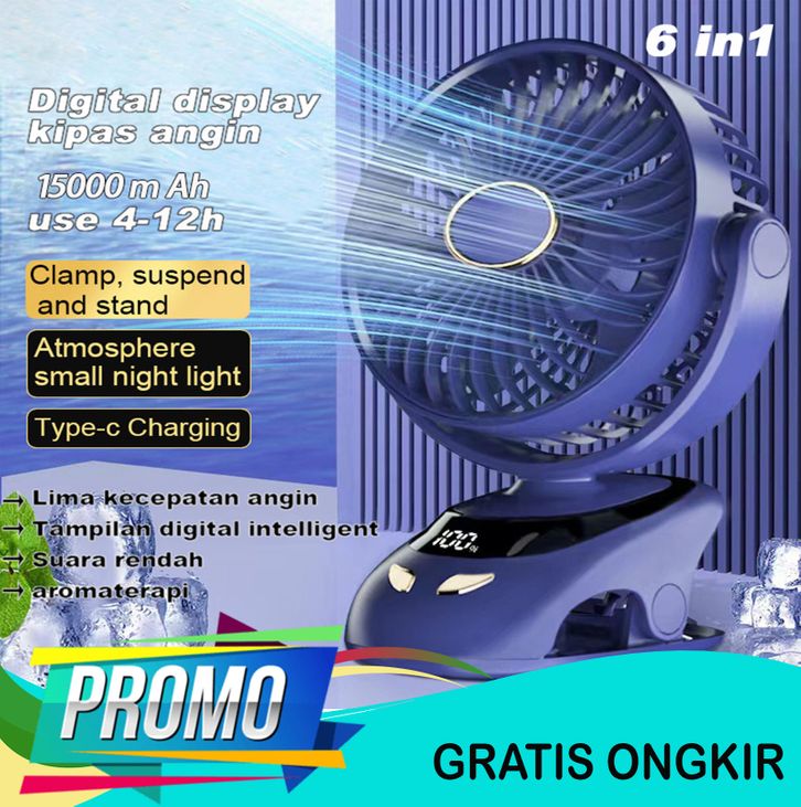 15000mAh Kipas Angin USB Clip Mini Fan Rotating Kipas Angin Meja Mini Jepit Portable LED Display Portable Fan Aromaterap