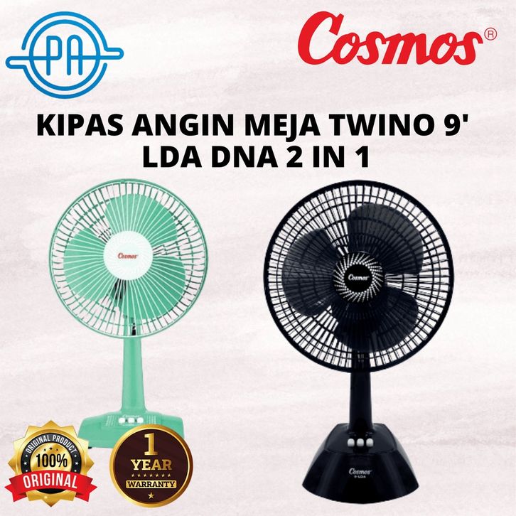 KIPAS ANGIN MEJA COSMOS TWINO 9 LDA DNA 2 IN 1 7 9 12 INCI DESK AND WALL FAN SUPER SPREAD PIANO MODEL SWITCH MURAH