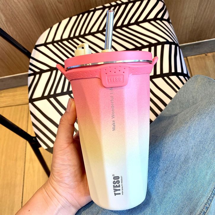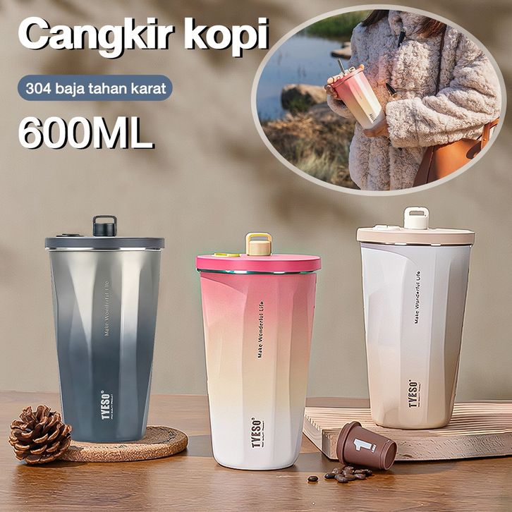 TYESO Tumbler Ori Tumbler9radasi Premium Vacuum Insulated Conical Straw Cap 600ml Original