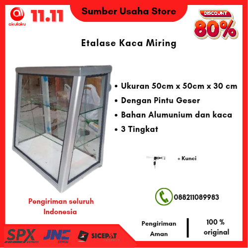 Etalase kaca Jualan/Etalase Kaca Warung/Etalase Kaca Miring bahan alumunium 50x50x30